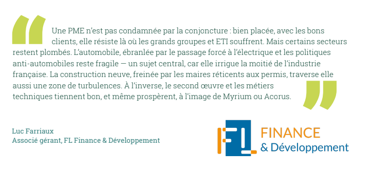 Alors que ces facteurs provoquaient auparavant des hésitations chez les acheteurs et les vendeurs, on observe désormais un ajustement structurel. De nombreux acteurs du marché se sont adaptés à cette nouvelle réalité, où la volatilité tend à s’imposer comme règle générale. Cette adaptation marque l’émergence d’une « nouvelle normalité » visible sur l’ensemble du marché des fusions-acquisitions, en particulier dans le segment des PME, traditionnellement moins sensible aux fluctuations macroéconomiques.