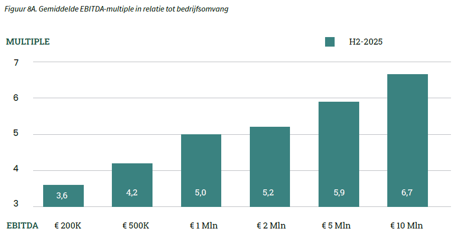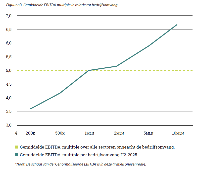 Het verschil in de EBITDA multiple tussen bedrijven met een genormaliseerde EBITDA van € 200.000 en